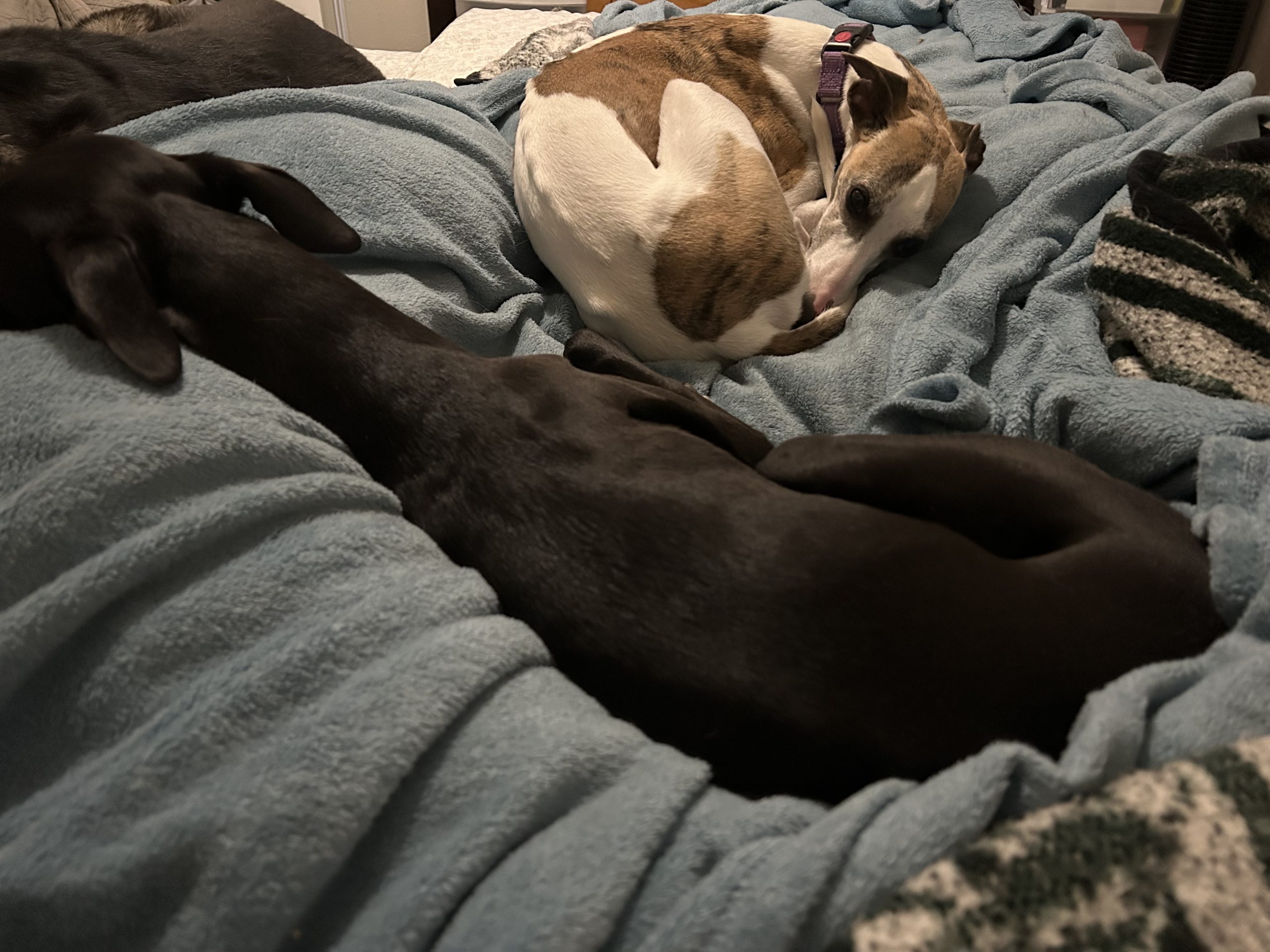 A QUIET home life with very patient humans. She may do best with a single female who does not have a lot of guests coming and going. She would also do best in a home with other dogs (another Whippet or two is preferred) – they will need to be patient & tolerant as she learns how to navigate this new life.